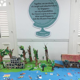 Children had the opportunities to discuss with their teachers about how they felt Singapore would look like in 50 years time. Together, the children and teachers created artifacts to reflect their dreams for the future of Singapore .